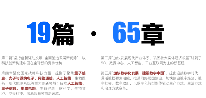 正因為數(shù)字經(jīng)濟如此之重要,中央一號文件、中華人民共和國國民經(jīng)濟和社會發(fā)展第十四個五年規(guī)劃和2035年遠景目標綱要都提到了數(shù)字經(jīng)濟,國務(wù)院正式印發(fā)了《“十四五”數(shù)字經(jīng)濟發(fā)展規(guī)劃》,明確了“十四五”時期推動數(shù)字經(jīng)濟健康發(fā)展的知道思 想、基本原則、發(fā)展目標、重點任務(wù)和保障措施,國家發(fā)改委、中華人民共和國工業(yè)和信息化部、國資委、國家住建部、商務(wù)部、交通運輸部、農(nóng)業(yè)農(nóng)村部等都從不同層面做出了數(shù)十項的部署和安排,因為不在本文主要闡述范圍內(nèi),不再贅述。